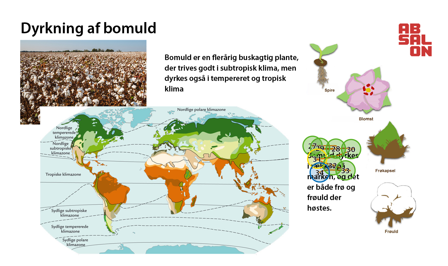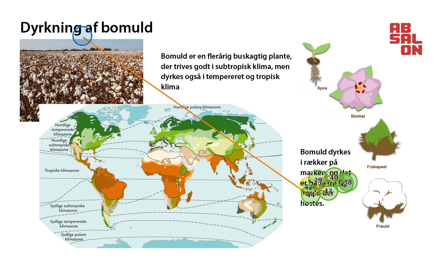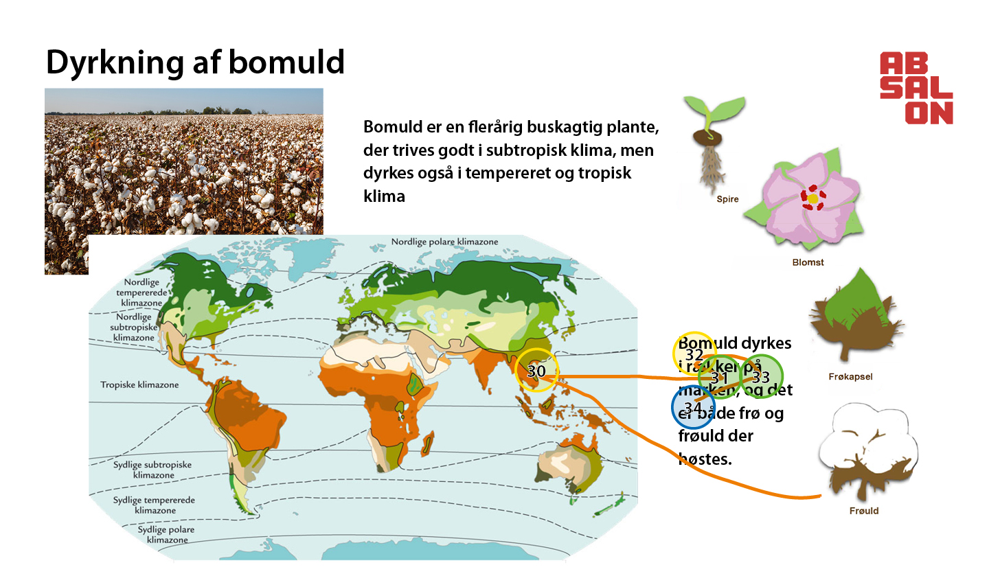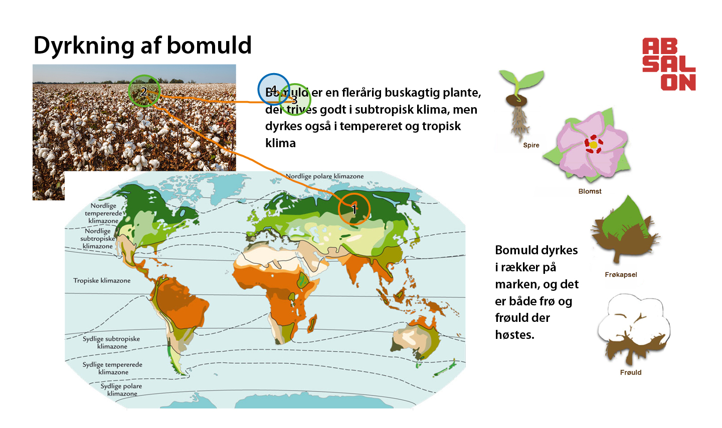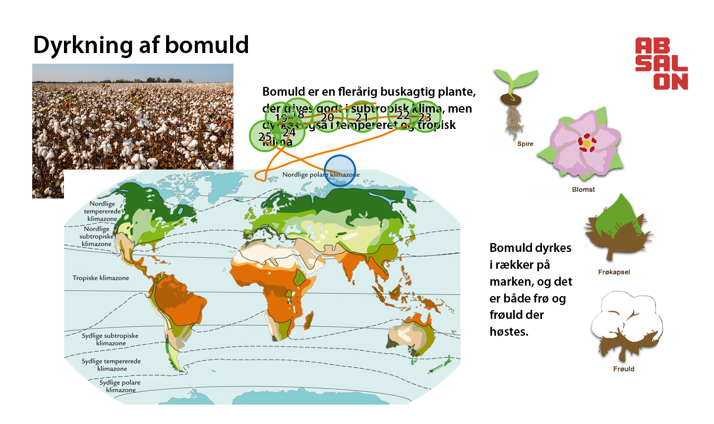 Billedserie 1 viser altså, hvordan en sikker læser læser teksten ved at begynde ved den øverste tekstblok, fortsætte med billedsekvensen af bomuldsplantens udvikling og dernæst læse tekstblok 2.