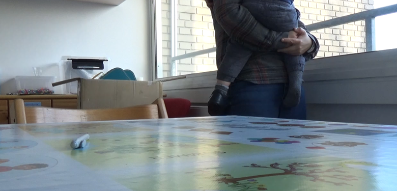 Både i denne hvervesituation og gennem interviewene gjorde jeg mig umage for at være opmærksom på og reagere på kropslige signaler om tvivl, usikkerhed og utryghed blandt børnene. I interviewet med Thor på godt halvandet år gav det sig udslag i, at interviewet godt nok startede som de øvrige interviews med Thor og mig på hver vores stol og det visuelle interviewmateriale på bordet foran os. Men fordi Thor fremstod urolig og potentielt utryg ved det arrangement, udviklede det sig til en improviseret stående snak, hvor jeg i stedet tog Thor op, vendte mig mod vinduet med ham på armen og talte med ham om, hvad vi kunne se ud ad vinduet.
