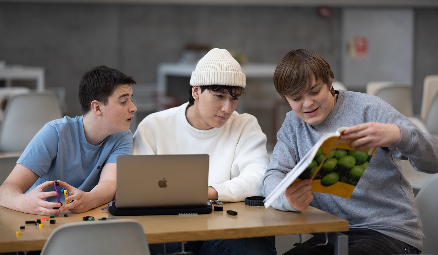 En gruppe elever bruger læseguiden i deres arbejde med at lave beregninger i et reaktionsskema.